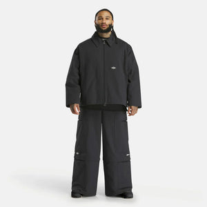 A padded coach's jacket created in collaboration with Tobe Nwigwe