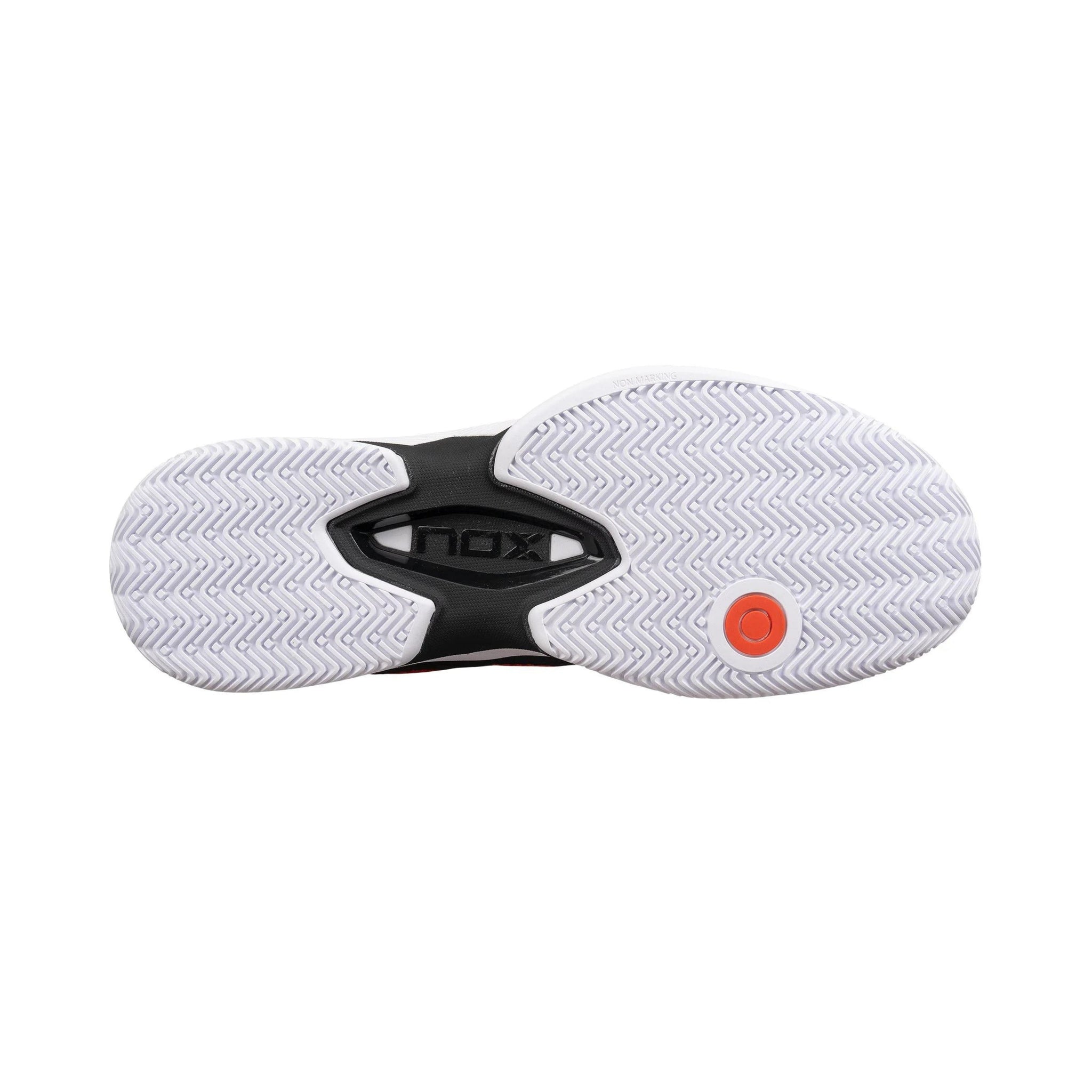 But that's not all, they have included the well loved, optimal grip sole, which combines a herringbone pattern with small studs. This has been designed specifically in conjunction with the leading turf manufacturers for Padel to ensure the optimum grip on the artificial surface, even when there is silica sand present. We then have the AbraXone technology, which gives you maximum cushioning and energy return thanks to the mounted Strobel of the popcorn EVA rubber sole and the low density injected phylon midsole, plus inner lateral reinforcement to increase abrasion resistance and provide the shoe with greater stability. Between this and your foot we have the all important Ortholite insole for maximum comfort in the game. This contact point is absolutely critical and NOX have spared no expense here to ensure you have excellent cushioning at this point of contact to reduce the feeling of fatigue. In addition, its also anti-microbial to help prevent the accumulation of bacteria and odor while we perform at our highest level.