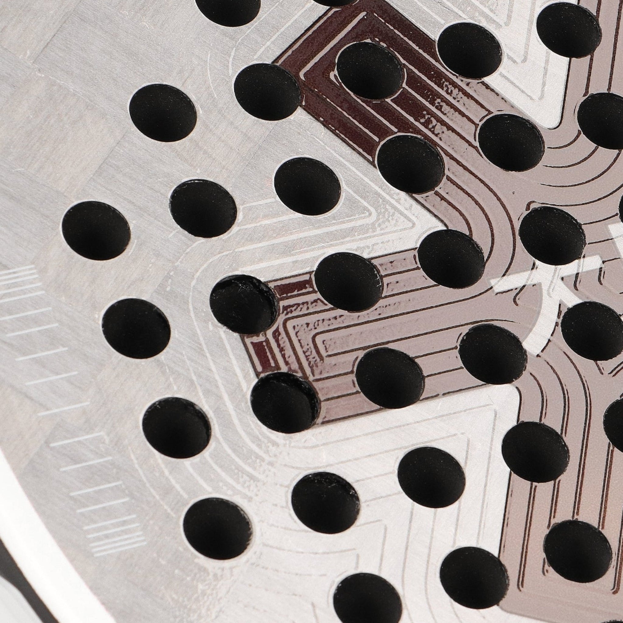 But that's not all, the frame is also further protected by a beautifully designed and shaped clear TPU bumper, this bumper has a maximum depth of 2,5mm and weighs around 11 grams. Giving you added protection against impacts with a low added weight. Lastly, we have the all-new and improved 3D raised quantum spin system that is underneath the incredible looking holographic silver finish. This consists of a new embossed grip pattern as well as the improved drilling system for sharper holes and more spin delivery.