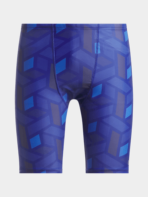 Dive into your next swim session with flair in these men's geometric print swim jammers. Boasting a vibrant navy and blue pattern, they ensure you look sharp while conquering the lanes. Crafted from a soft, durable polyester-elastane blend, these jammers offer maximum comfort and flexibility. Enjoy a slim, performance-focused fit that stands up to countless laps and intense workouts.